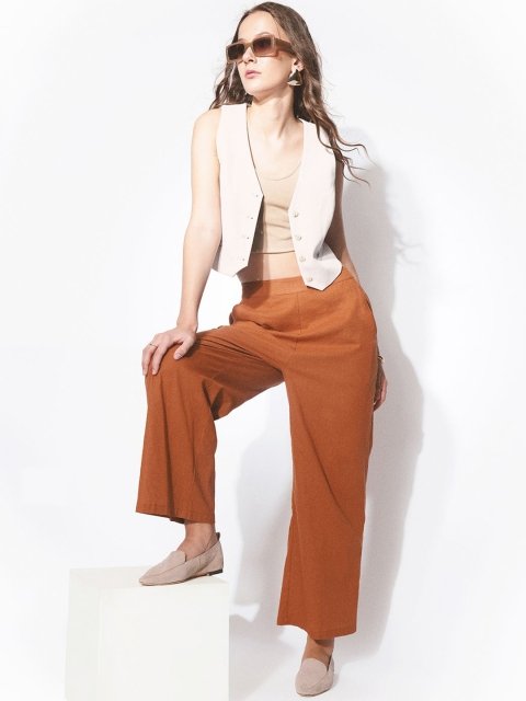 H&M Women High-Rise Cotton Easy Wash Trouser