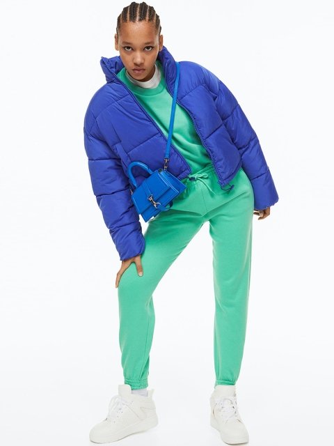 Joggers in soft sweatshirt fabric. High waist with smocked elastication and a drawstring, side pockets and gently tapered legs with smocked elastication at the hems.