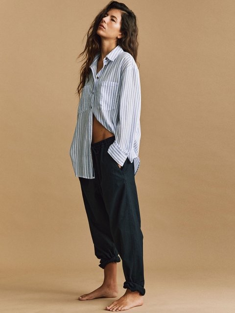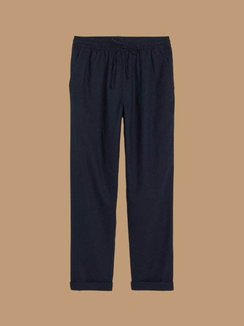 Joggers in woven fabric made from a linen and cotton blend. Loose fit with covered elastication and a narrow drawstring at the waist, diagonal side pockets and tapered legs with sewn-in turn-ups at the hems.