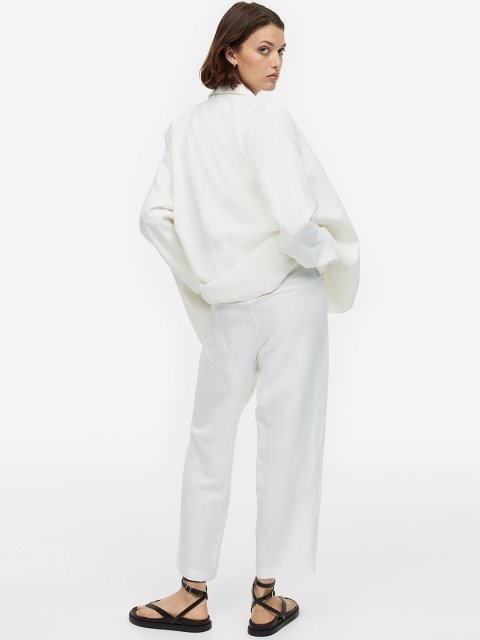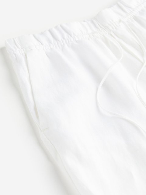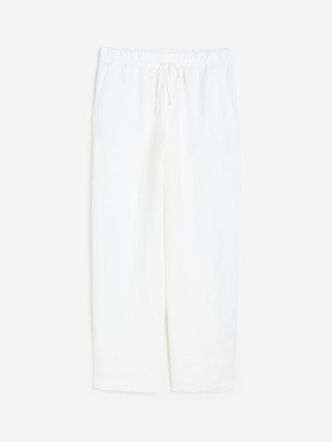 Ankle-length, tapered trousers in a viscose and linen weave. High, elasticated waist with a narrow drawstring, fake fly and diagonal side pockets.
