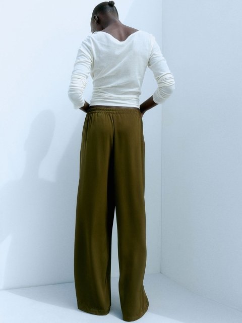 H&M Women Mid-Rise Loose Fit Wide Pull-On Trousers