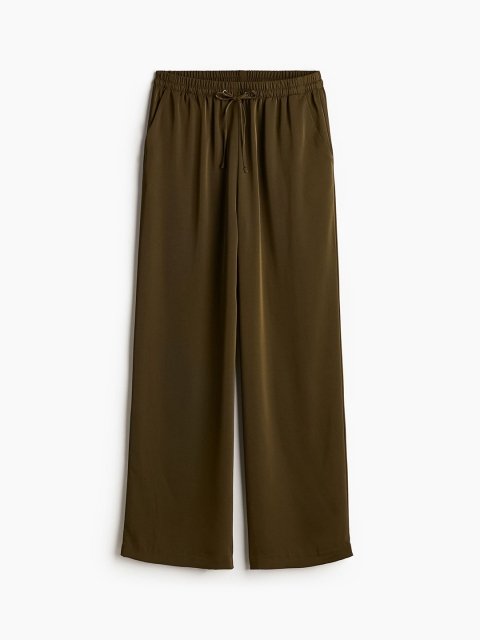 Loose-fit trousers in soft twill with a high, elasticated, drawstring waist, side pockets and wide legs.