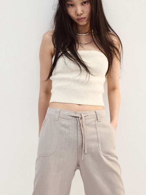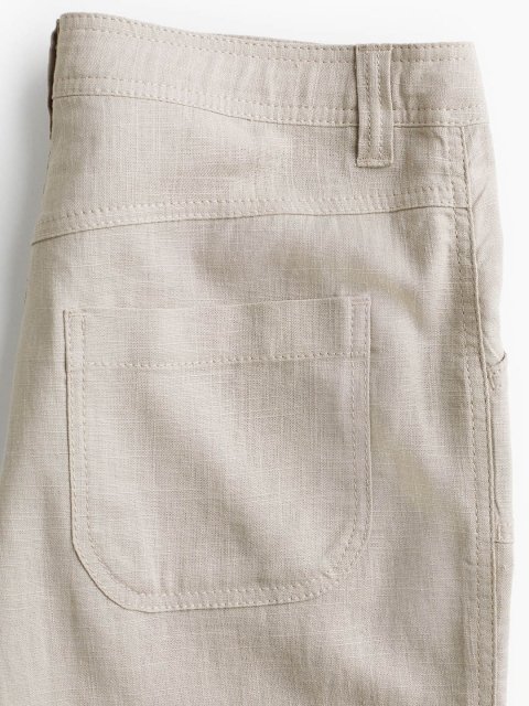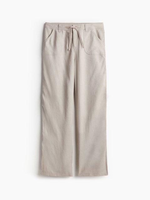 Trousers in an airy weave made from a viscose and linen blend. Regular waist with a drawstring and a zip fly and button. Diagonal side pockets, back pockets and straight legs.