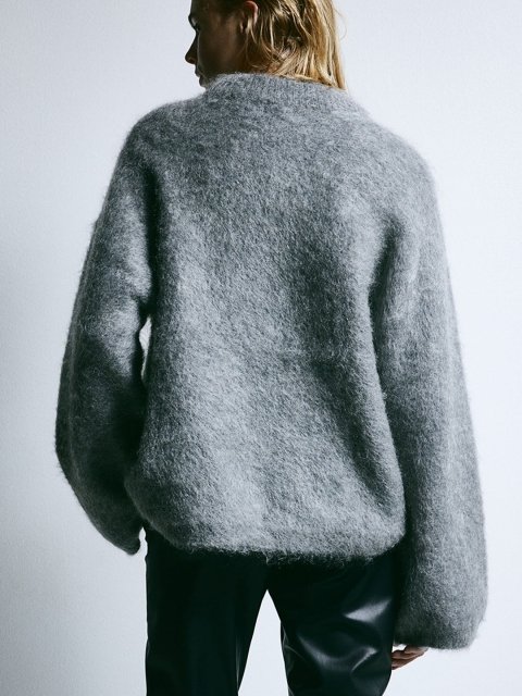 Tailored trousers in coated fabric with a high waist, zip fly and a concealed button and hook-and-bar fastening. Diagonal side pockets, fake welt pockets at the back and slim legs with sewn-in creases down the front.