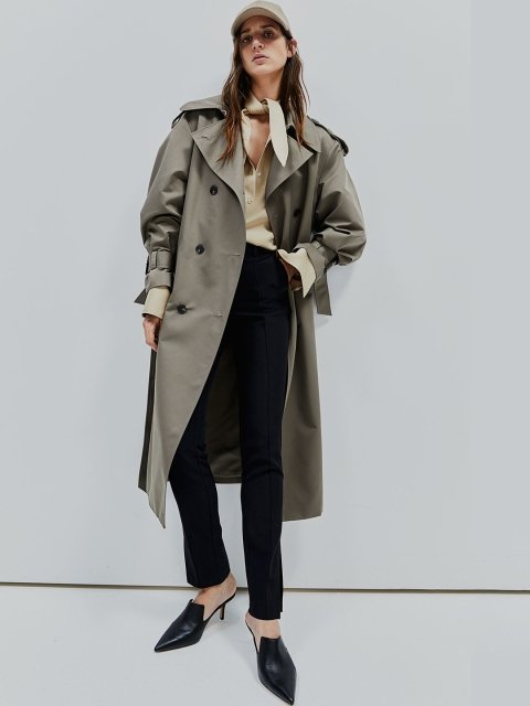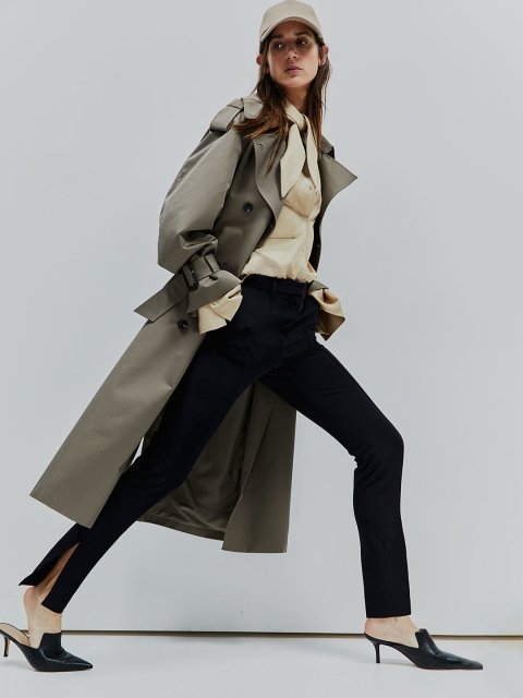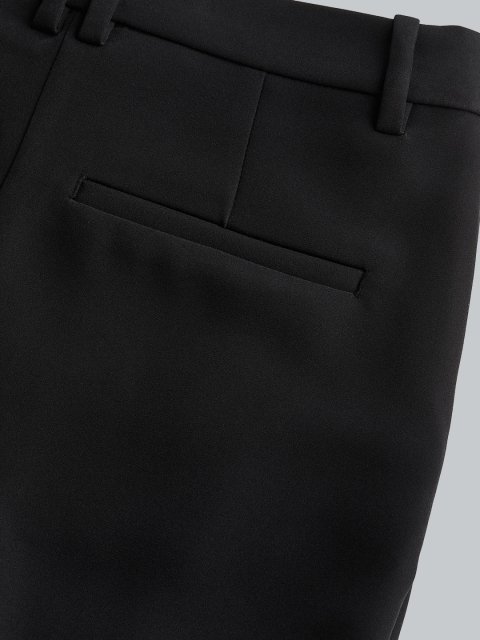 Tailored trousers in woven fabric with a high waist, zip fly and a concealed button and hook-and-eye fastener. Diagonal side pockets, welt back pockets and slim, tapered legs with creases down the front and back and a slit at the hems.