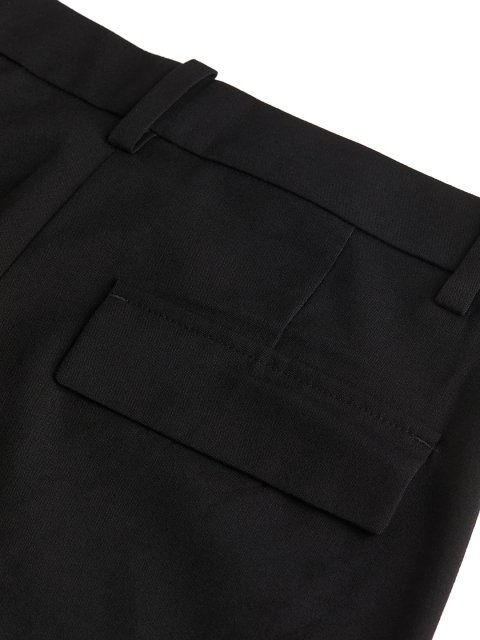 Tailored trousers in woven fabric with a low waist, zip fly and a concealed button and hook-and-eye fastener. Diagonal side pockets and flap back pockets. Straight legs with creases.