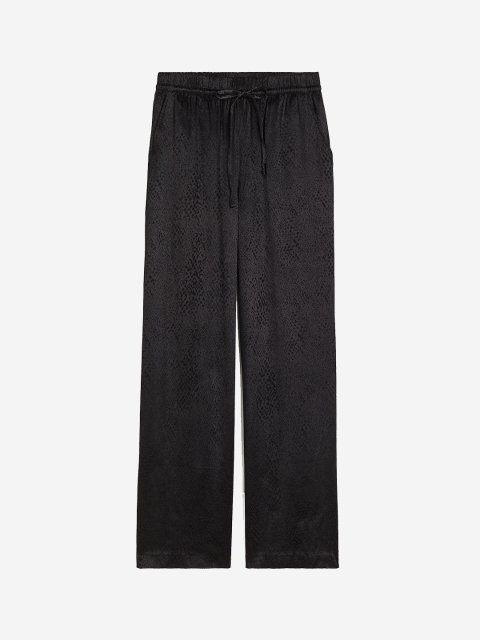 Trousers in twill with a high, drawstring waist, diagonal side pockets, fake welt pockets at the back and wide, straight legs.