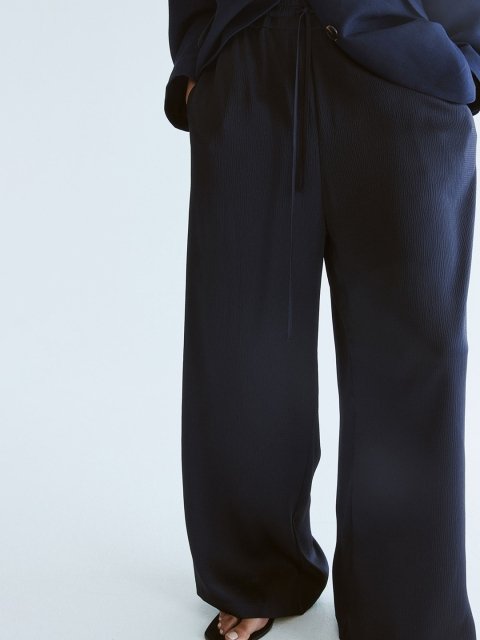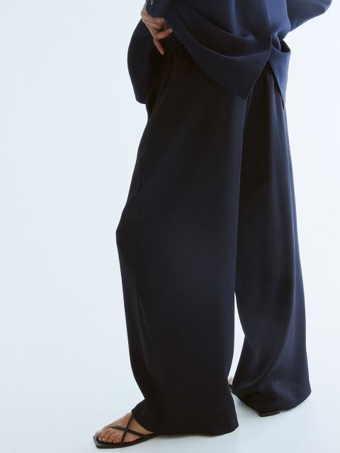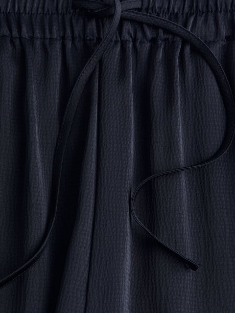Loose-fit trousers in woven fabric featuring a high, elasticated waist with a narrow drawstring, discreet side pockets and wide legs.