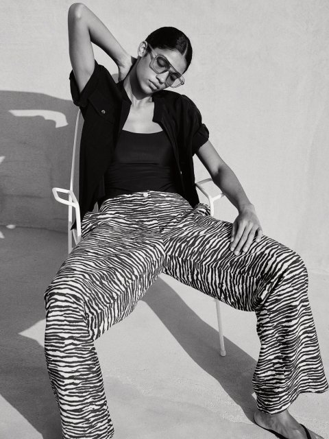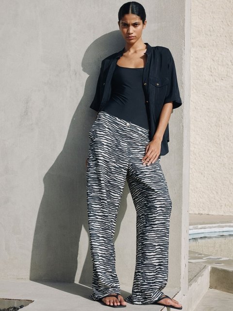 Tailored trousers in woven fabric made from a viscose blend. Regular waist with a zip fly and button, diagonal side pockets and wide legs.
