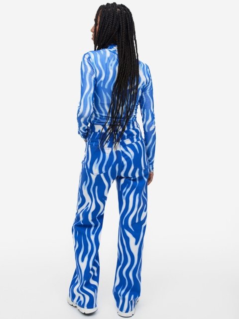 Loose-fit, 5-pocket trousers in cotton twill with a high waist, zip fly and button and wide, straight legs.