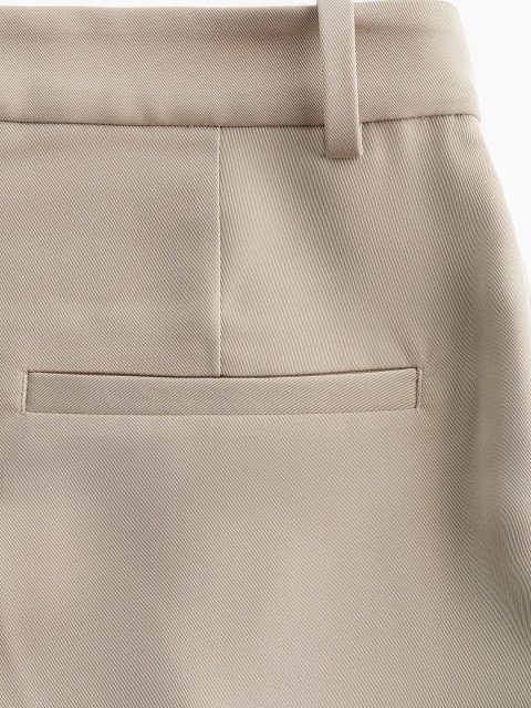 Tailored trousers in twill with a high waist and a zip fly with a concealed button and hook-and-eye fastener. Discreet side pockets, fake welt pockets at the back and wide, ankle-length legs with creases down the front and back.