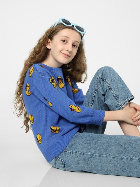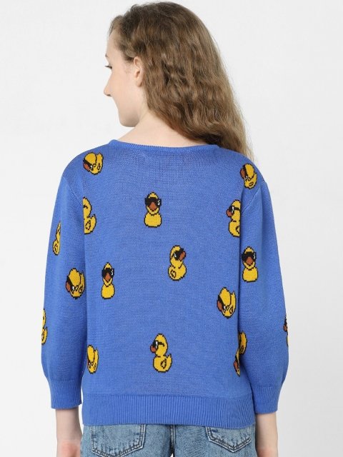 KIDS ONLY Girls Blue & Black Cotton Printed Pullover