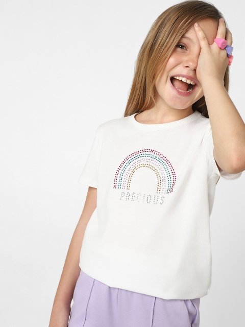 KIDS ONLY Girls Embellished Printed Round Neck Cotton T-shirt