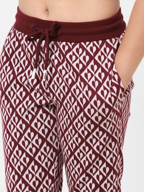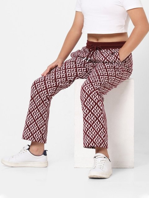 Maroon printed regular-fit track pants has an elasticated waistband with a drawstring closure and two pockets