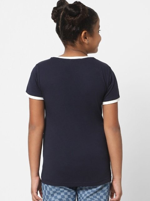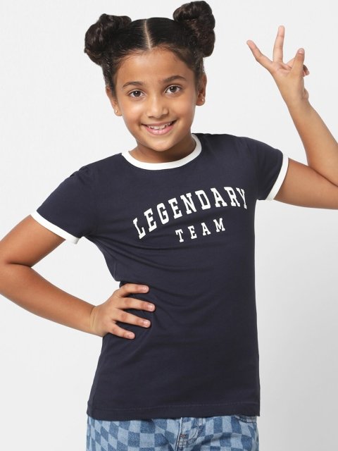 KIDS ONLY Girls Navy Blue Typography Printed Cotton T-shirt