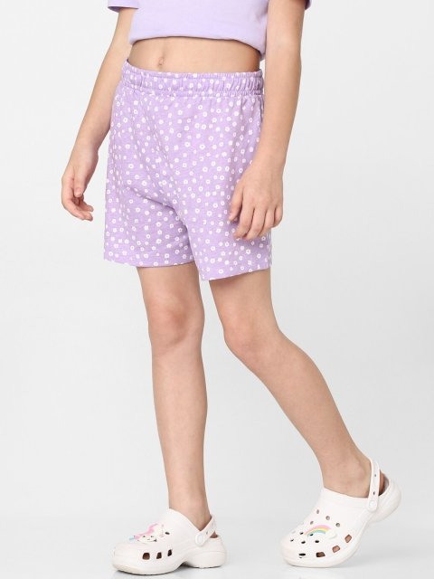Purple solid printed mid-rise regular shorts, drawstring closure