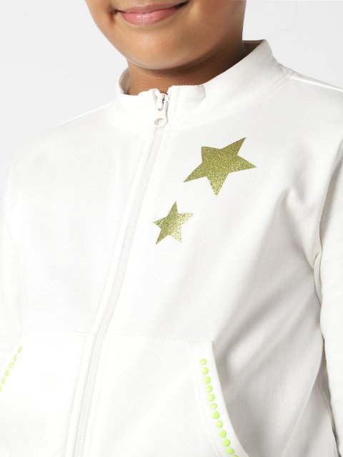 Solid sweatshirt has a round neck, 2 kangaroo pocket pockets, long sleeves, zip closure, straight hem
