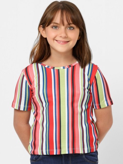 KIDS ONLY Girls Striped Round Neck Cotton T-shirt