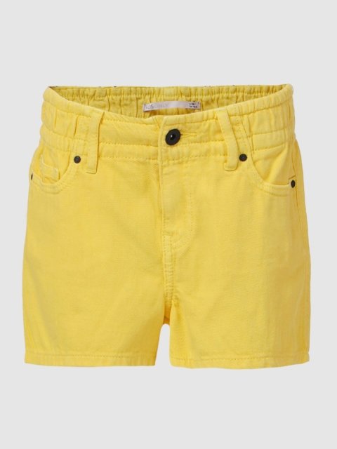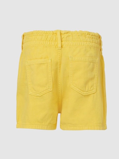 Yellow solid mid-rise denim shorts, has 5 pockets, button closure