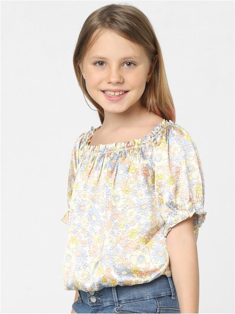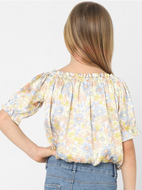 KIDS ONLY White Floral Print Blouson Crop Top