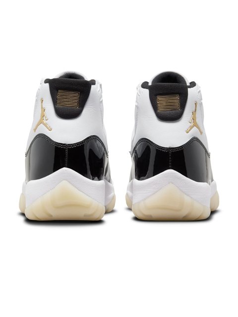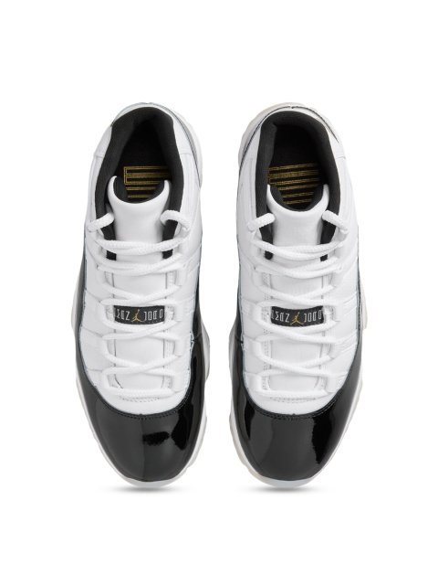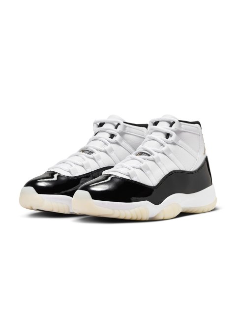 ABOUT THE PRODUCT : From us, to youthis release of the AJ11 is a “thank you” to our day ones and those committed to carrying the Jordan legacy forwards. Celebrating a heritage colourway, this classic honours MJ’s legacy while elevating the materials for those pushing culture to new heights. The upper is designed with a mix of premium materials like luxe leather, along with a smooth knit collar. The glossy patent leather mudguard gleams just like the original. A tinted translucent outsole offers a clean finish while the welded gold Jumpman radiates the shoe’s championship roots.