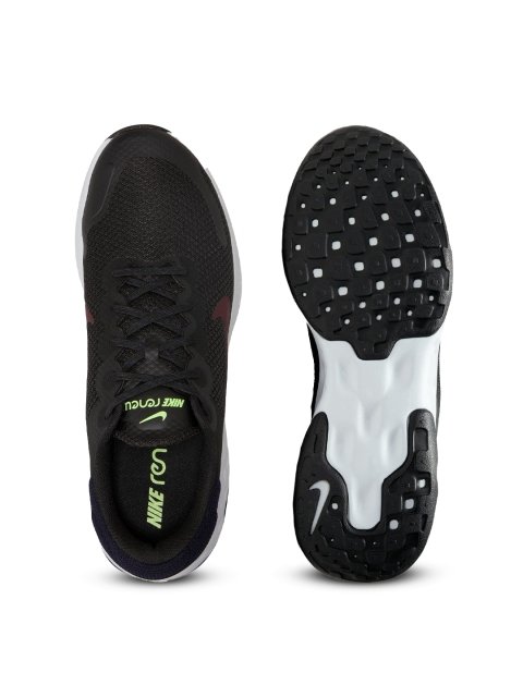 - A pair of black solid round toe sports shoes with regular styling has a lace-up closure